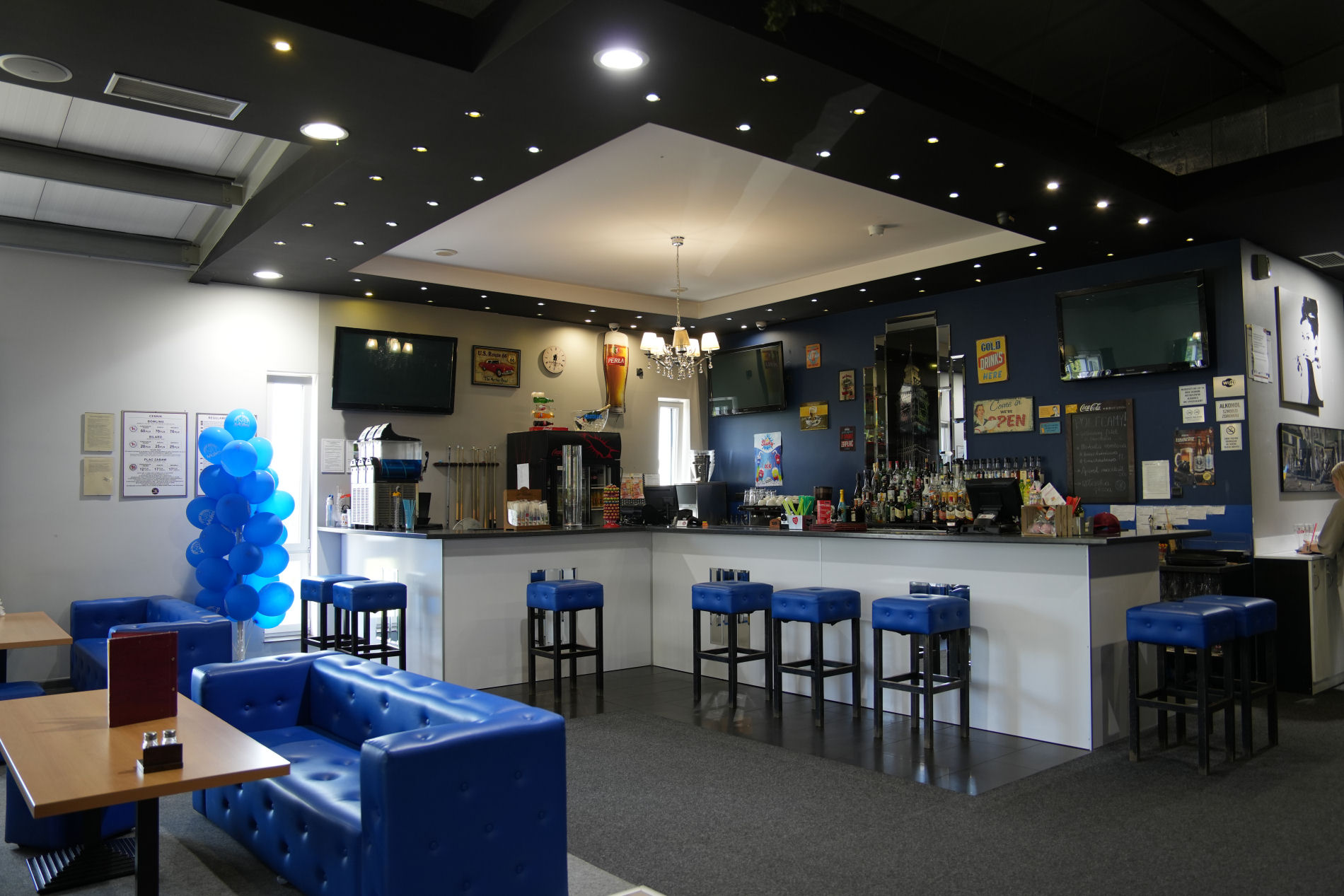 Spędzając u nas czas nie trzeba martwić się o posiłek, który można zamówić na miejscu, a nasze kucharki szybko i smacznie go przygotują. Podczas rozgrywek wzmaga się pragnienie, które również można u nas ugasić, a dla smakoszy oferujemy smaczną kawę świeżo mieloną z ekspresu w wielu wydaniach z syropami i mlekiem. Młodzieży do lat 18 oraz osobom nietrzeźwym alkoholu nie sprzedajemy.